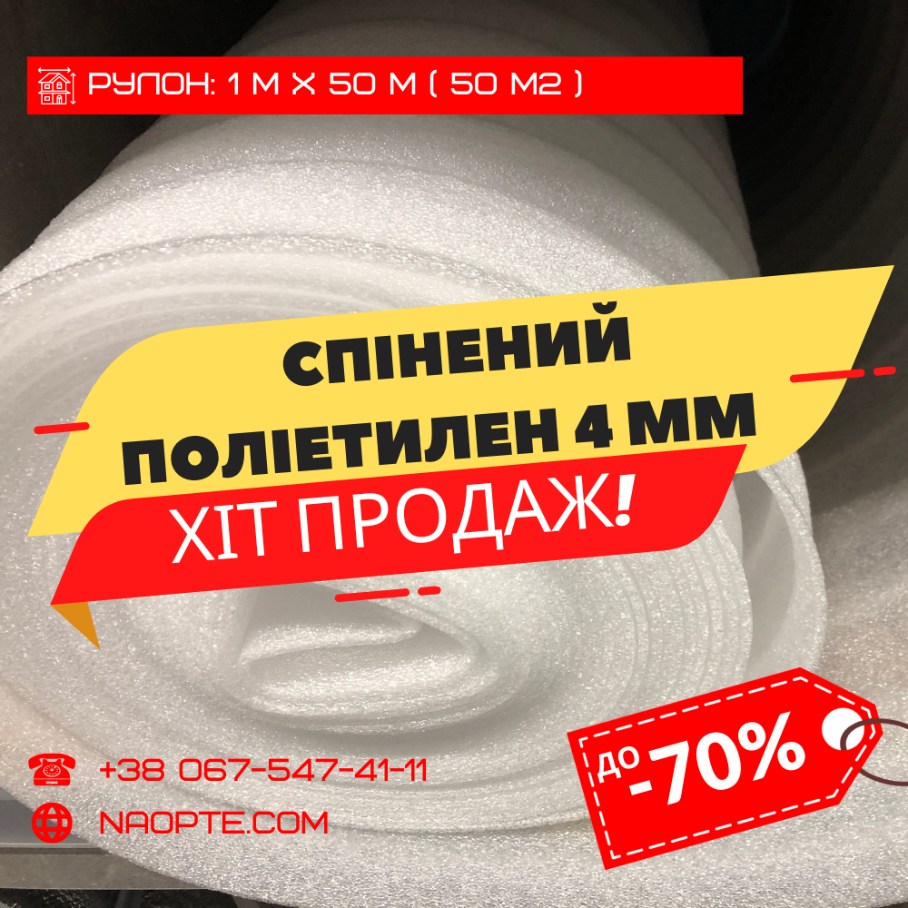 Спінений поліетилен 4 мм РУЛОН 50 М2 (Ізолон, Пінофол, Пінополіетилен ППЕ).