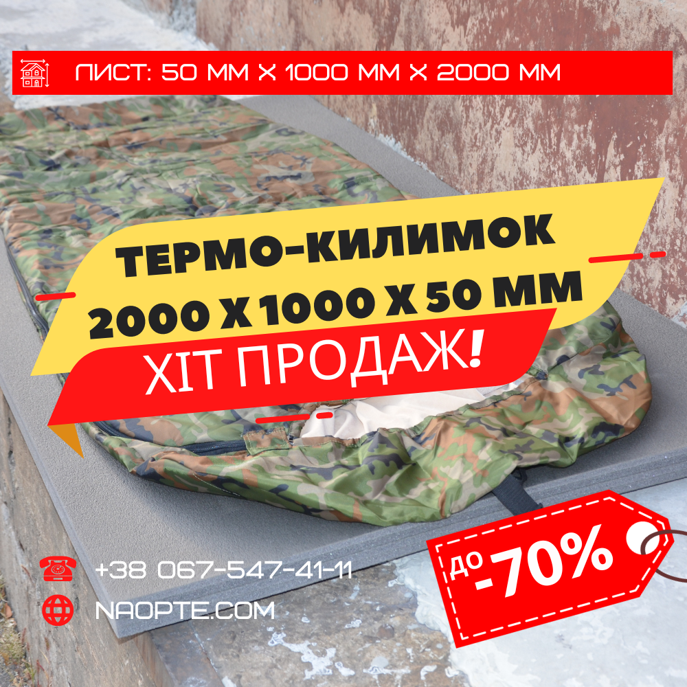Недорогий та якісний термокилимок. Поєднує в собі такі якості: теплоізоляція, вологозахист, комфорт та практичність від експлуатації. Легкий та міцний. Товщина 50 мм захистить від промерзання на холодній землі. При мінусових температурах зберігає еластичність та низьку теплопровідність. Килимок легко миється і має невелику вагу. При контакті зі шкірою людини не викликає подразнення.